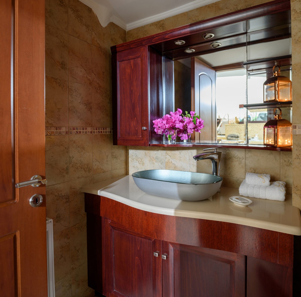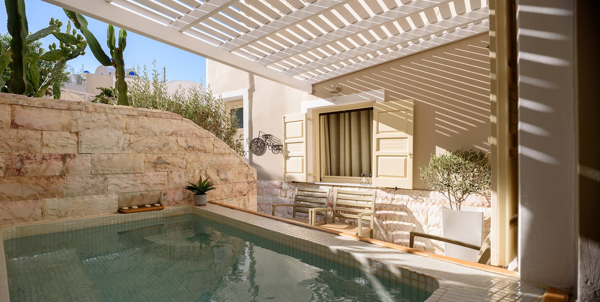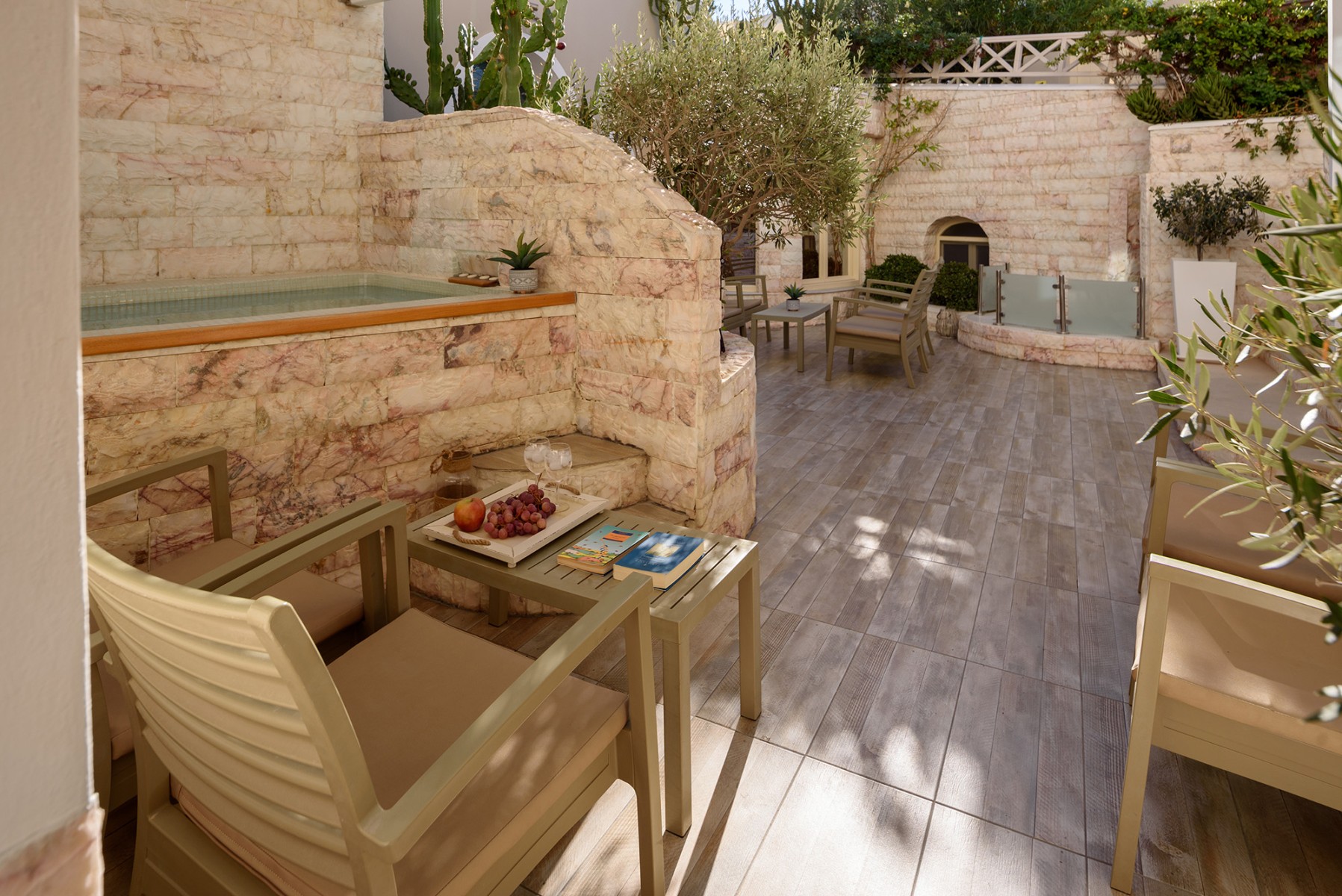 Elite villa is a beautiful cave apartment with Cycladic characteristics, luxurious and well designed for 1 to 6 guests. Features two private bedrooms with king size beds, a bathroom, a toilet and a fully equipped kitchen. A spacious living room with sofa bed that opens up to a double bed completes the occupancy of this villa. In a luxury context where anything is left to the case, with a traditional fine design well mixed to the modern days and the technology, this villa opens up to a furnished veranda with outdoor heated jacuzzi and garden view.